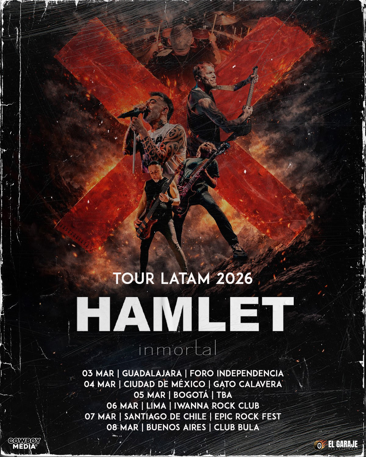 El “Inmortal Latam Tour 2026” destaca por una logística exigente y una entrega física total. Hamlet aterrizará en México para abrir la ruta en Guadalajara y Ciudad de México, bajando por el continente hasta concluir en el fervor de Buenos Aires. Una de las paradas más esperadas será en Santiago de Chile, donde formarán parte del prestigioso Epic Rock Fest junto a nombres internacionales.